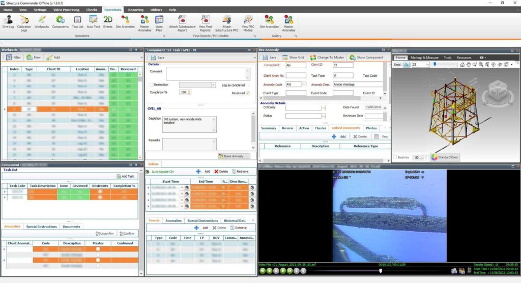 Our Structure Commander enhances periodic inspection and condition monitoring to detect and assess damage and degradation. The solution consists of four integrated modules which work together for data acquisition, online eventing, digital video recording, task scheduling, data processing and reporting with an easy-to-use interface and real-time, 3D viewing. It’s capable of handling any subsea structure including: